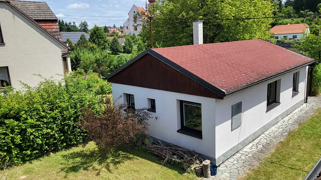 Prodej zděného domu v obci Nepomuk, okres Plzeň – jih, ulice U Rybníka, zastavěná plocha domu je 59 m², vlastní pozemek včetně domu 540 m², stavba má číslo evidenční, pozemek je částečně oplocený, umístění na konci slepé ulice, výhled z pozemku je na Špitálský rybník, parkování je možné před domem.