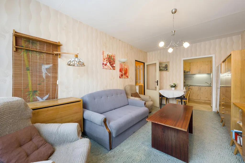 Podlahy jsou v bytě pokryty linoleem a koberci, které poskytují příjemný pocit pro chůzi. Součástí bytu je také sklep, který vám nabízí dostatek místa pro uložení sezónního vybavení.