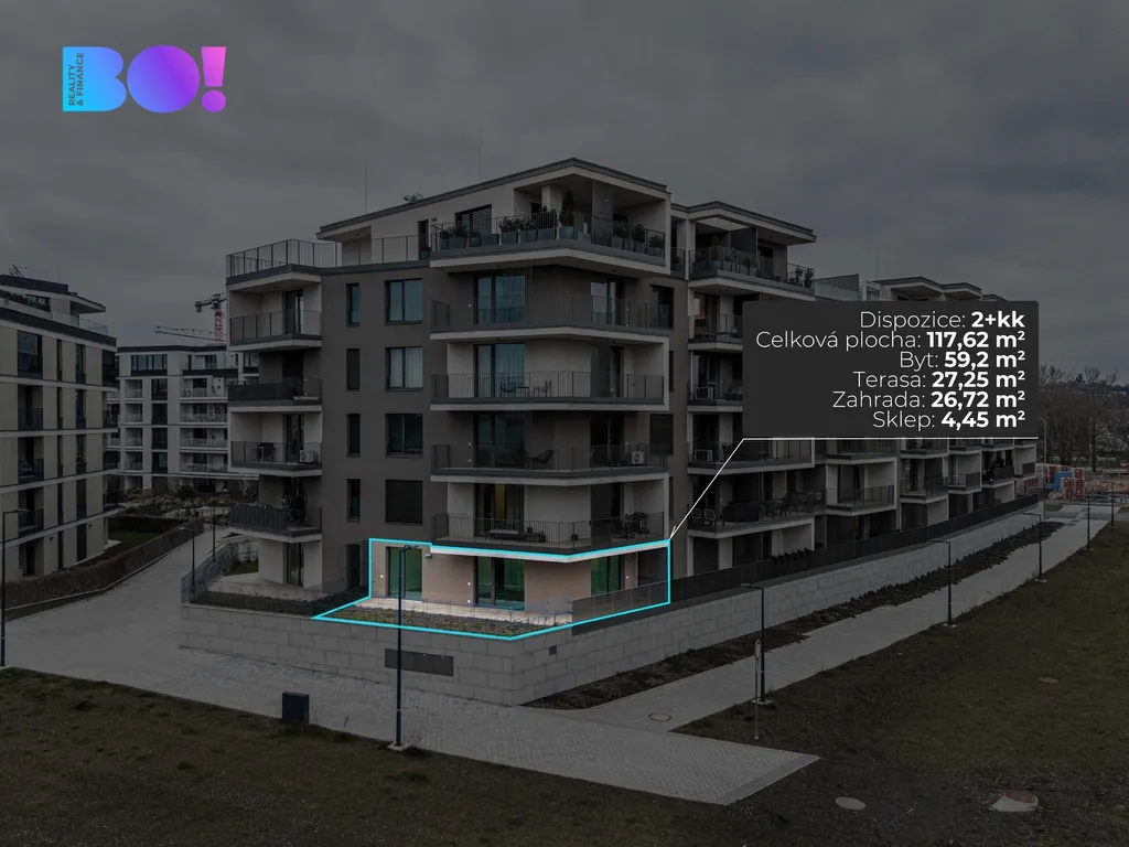 BO! Reality vám nabízí k pronájmu nový byt 2+kk s terasou a zahradou, umístěný v 1. nadzemním podlaží novostavby s výtahem. Byt je součástí prestižního a oblíbeného projektu Rezidence Nová Karolina, který se stal symbolem moderního bydlení v Ostravě.