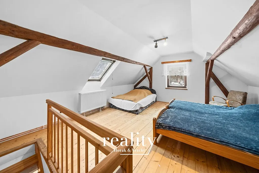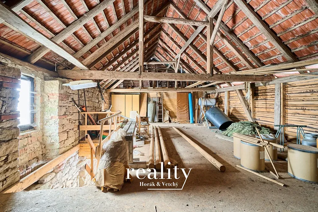 Za zmínku stojí i prostorná půda s potenciálem dostavby dalších pokojů/bytu s možností protažení těchto nových obytných prostor až nad průjezd, kde je již i zateplená podlaha.