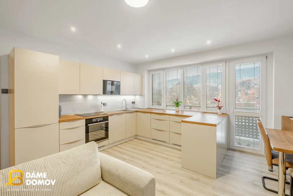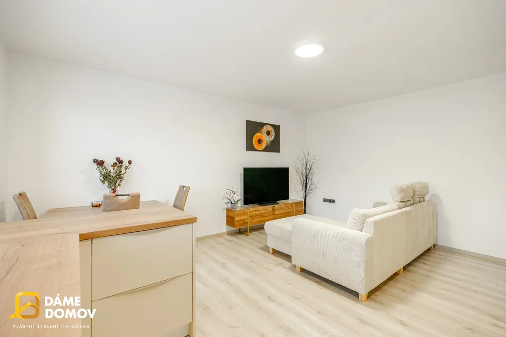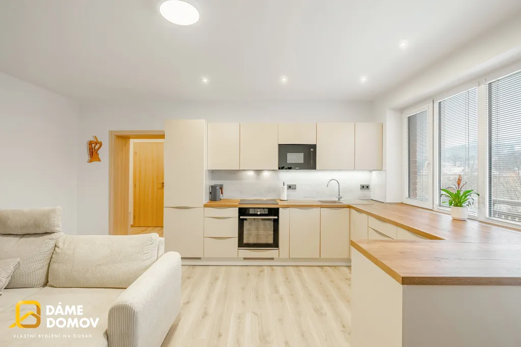 Byt o dispozici 3+kk je situován v 5. nadzemním podlaží a zaujme především svou vzdušností a promyšleným uspořádáním. Dominantou je prostorný obývací pokoj s velkou moderní kuchyňskou linkou, ideální pro rodinný život i setkávání s přáteli. Velká ložnice nabízí dostatek klidu i úložného prostoru, další pokoj lze využít jako pracovnu, dětský nebo hostovský pokoj. Koupelna je vybavena sprchovým koutem, toaleta je prakticky oddělena zvlášť.