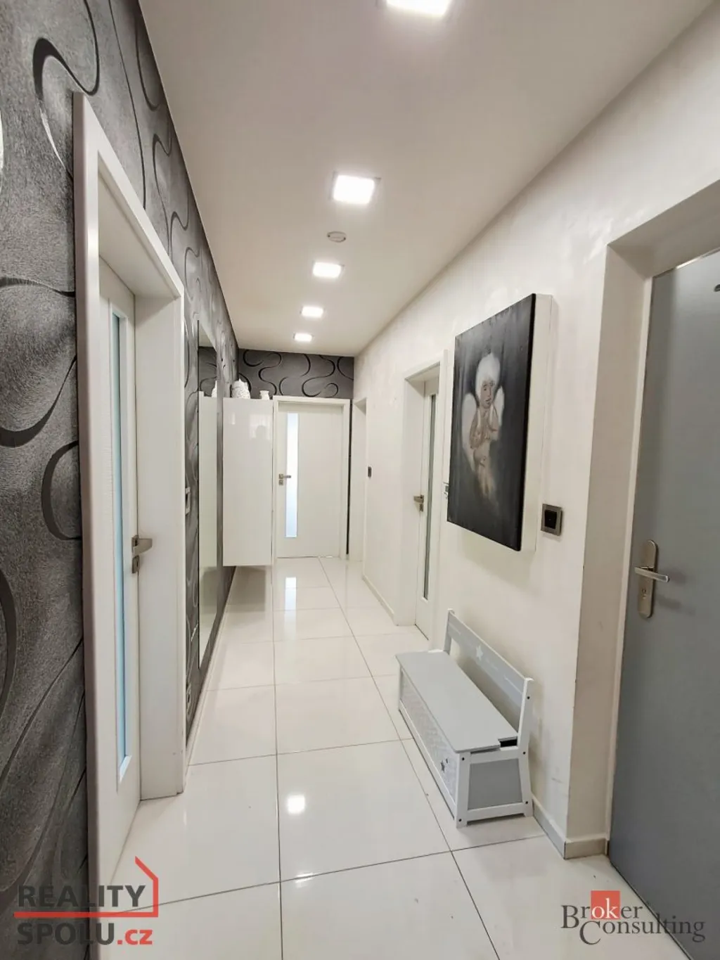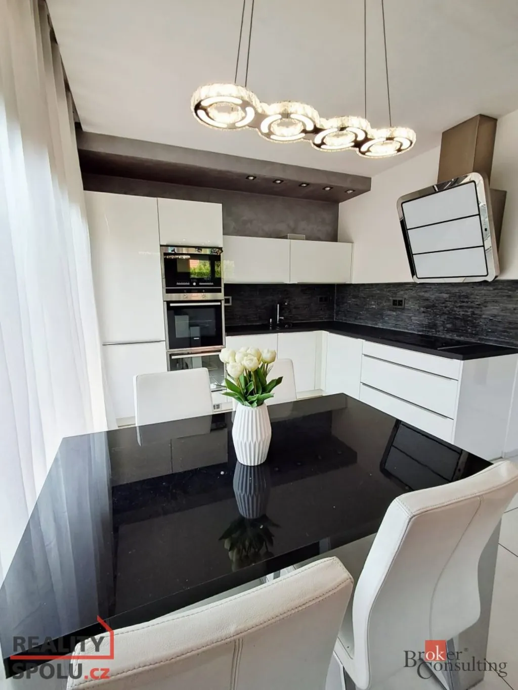 Byt o dispozici 3+kk a užitné ploše 75 m² je řešen velmi prakticky a nabízí ložnici, dětský pokoj, obývací pokoj s kuchyňským koutem a koupelnu. Veškeré místnosti jsou zařízeny v nadstandardním provedení s důrazem na kvalitu, komfort a moderní design, a to včetně veškerého vybavení (na fotografiích) – byt je připraven k nastěhování bez nutnosti dalších investic.