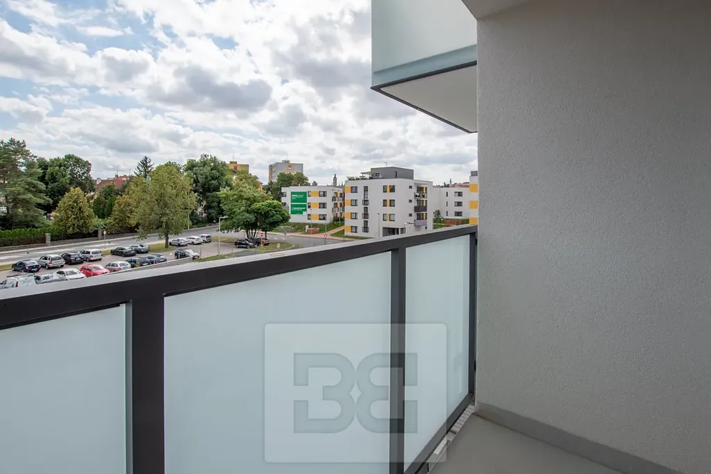 Součástí bytu je prostorný obývací pokoj s kuchyňským koutem o ploše 26 m², který je vybaven moderní kuchyňskou linkou s množstvím úložných prostor a vestavěnými spotřebiči – lednicí s mrazákem, troubou s mikrovlnnou troubou, myčkou, indukční varnou deskou a digestoří. Z obývacího pokoje je vstup na balkon o rozloze více než 4 m², orientovaný na jih a nabízející příjemný výhled. Druhý pokoj disponuje vlastní lodžií o velikosti 3 m². Komfort bydlení zajišťuje klimatizace v obou pokojích, prostorná koupelna se sprchovým koutem, samostatná toaleta, šatna a velkorysá vstupní chodba. V celém interiéru je položena kvalitní vinylová podlaha.