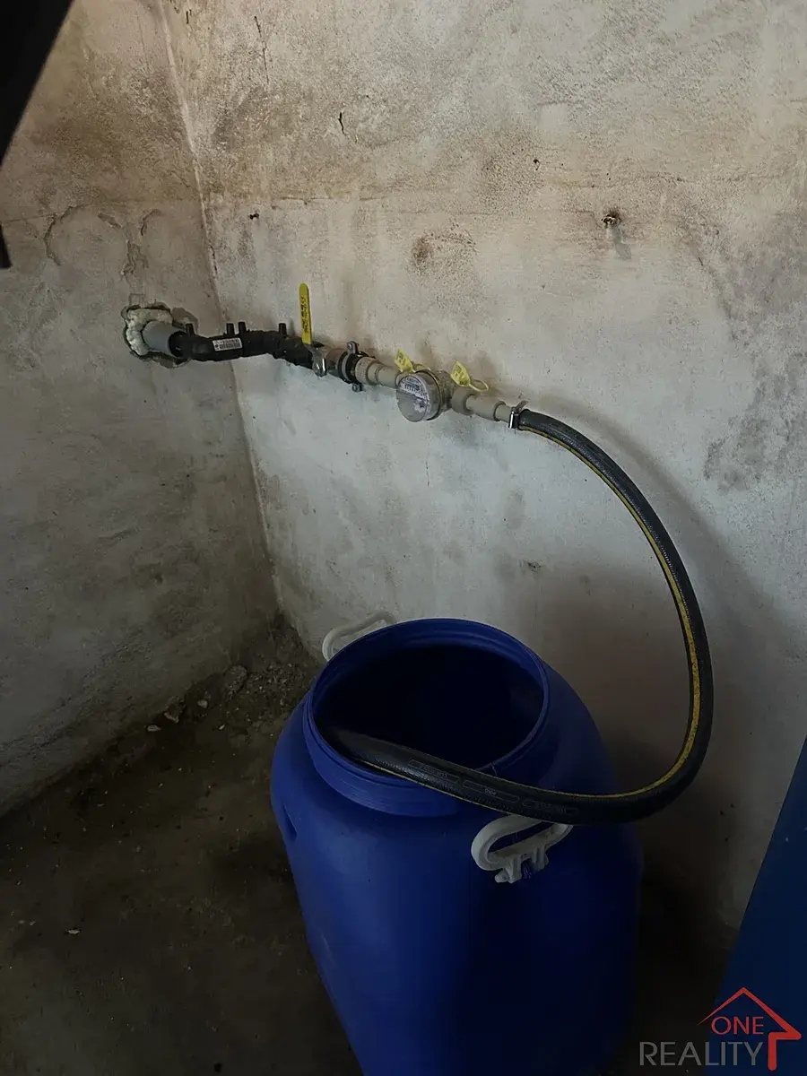 Na zahradě stojí podsklepená, dřevěná chata s novou pergolou. V chatě o velikosti cca 22m2 je elektřina a připojka na vodovodní řád. Na zahradě je přívod užitné vody.