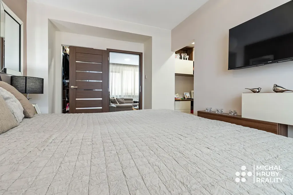 Tenhle byt vznikl přestavbou původního třípokojového bytu. Pokud chcete něco opravdu jedinečného, tady si to užijete naplno. Užitná plocha 79 m2 je až nadstandardně komfortní a navrch získáte pár praktických věcí.