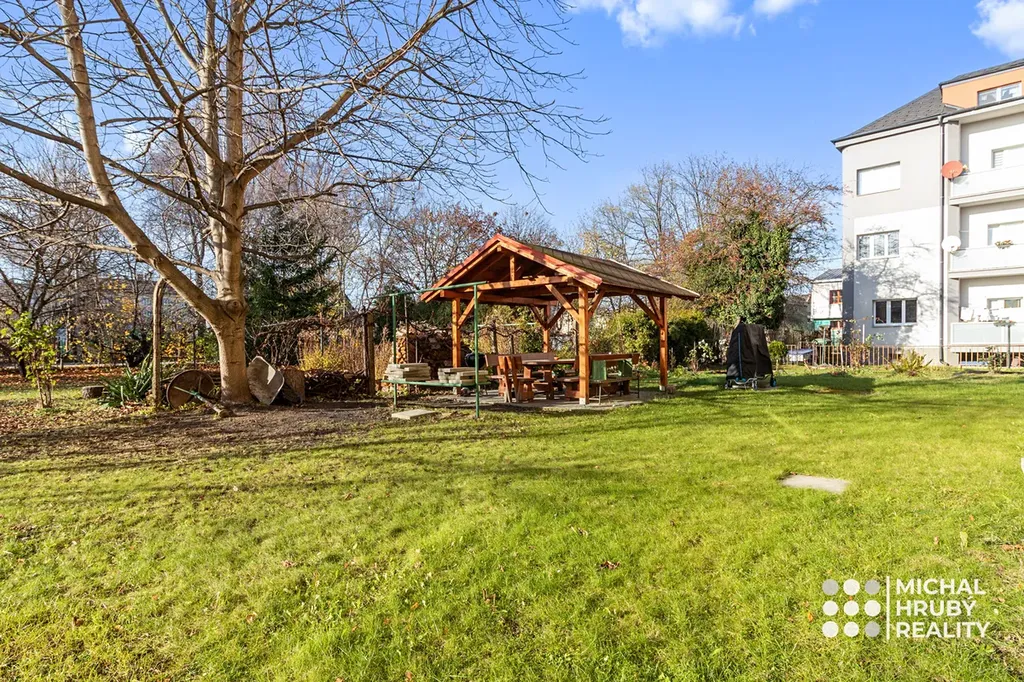 Nadčasový byt, který se vymyká běžným standardům. Privátní zahrada za domem, klidná vilová čtvrť a navrch vlastní parkovací stání.