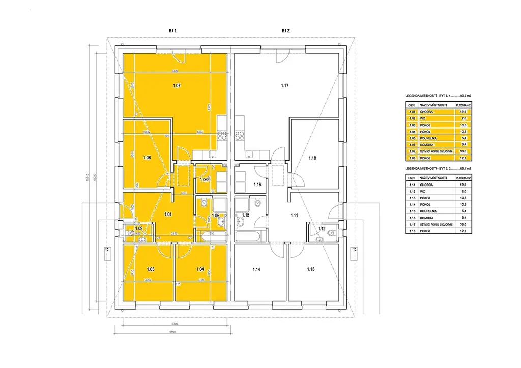 Bytové jednotky v RD budou dispozičně navržené jako 4+kk, užitná plocha 82 m2 (výměry jednotek je možné ještě rozšířit).
