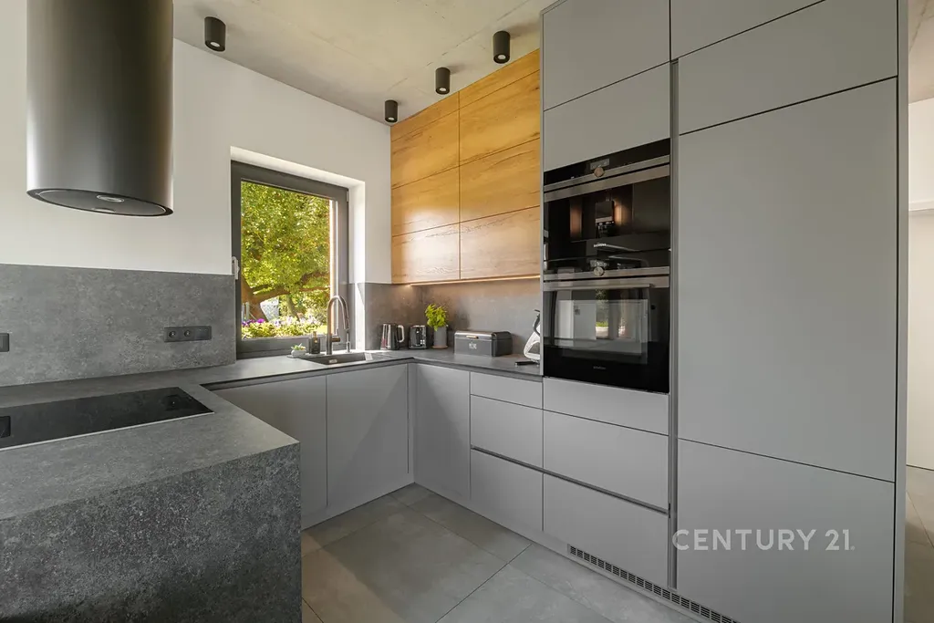 V domě se nachází dvě šatny, jedna spižírna a prostorná technická místnost s dalšími úložnými systémy vše na zakázku, taktéž kuchyňská linka na zakázkovou výrobu s vestavěnými spotřebiči (vč. vestavného kávovaru) vše užíváno s nadstandardní péčí.