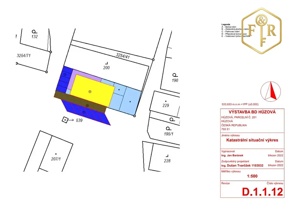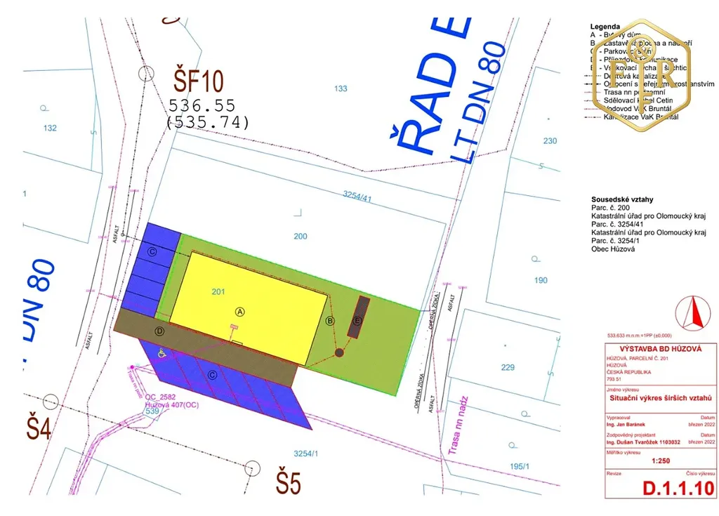 Novostavba bytového domu na pozemcích parc. č. 201 a 3254/1 v k. ú. Huzová, okres Olomouc.