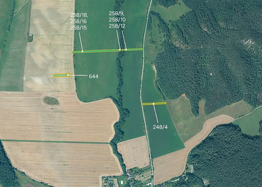 Parc. č. 167/1, 167/5, 248/4, 258/9, 258/10, 258/12, 258/15, 258/16, 258/18, 382/3, 450/3, 468/2 a 644, zapsané na LV 1357