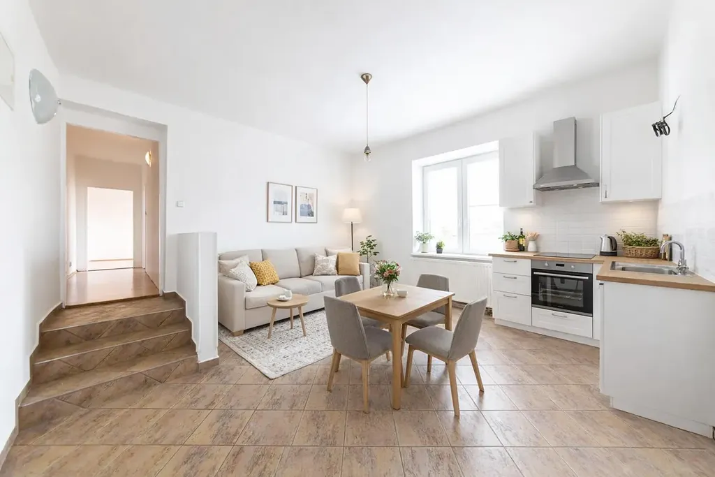 Nabízíme ke koupi byt 3+kk za výjimečně atraktivní cenu. Velkým benefitem je možnost okamžitého nastěhování bez dalších investic. Byt se nachází v 1. patře rekonstruovaného domu v naprosto klidné ulici, přitom pár kroků od zastávky MHD s rychlým spojením do centra města.