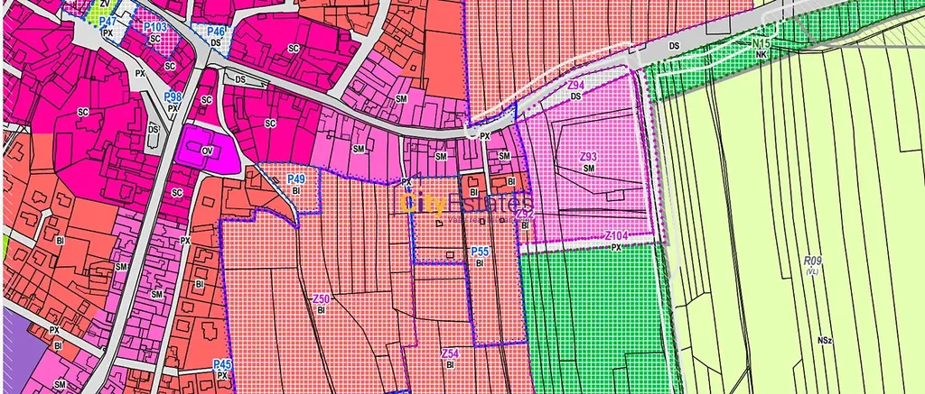 V územním plánu je pozemek na ploše SM - plochy smíšené obytné, městské.