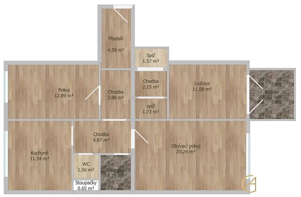 Byt má výbornou dispozici 3+1, oddělenou kuchyni, prostorné pokoje a okna na východ i západ, takže je celý den krásně světlý. Součástí je také balkon 5,6 m², ideální na ranní kávu nebo chvíli klidu.
