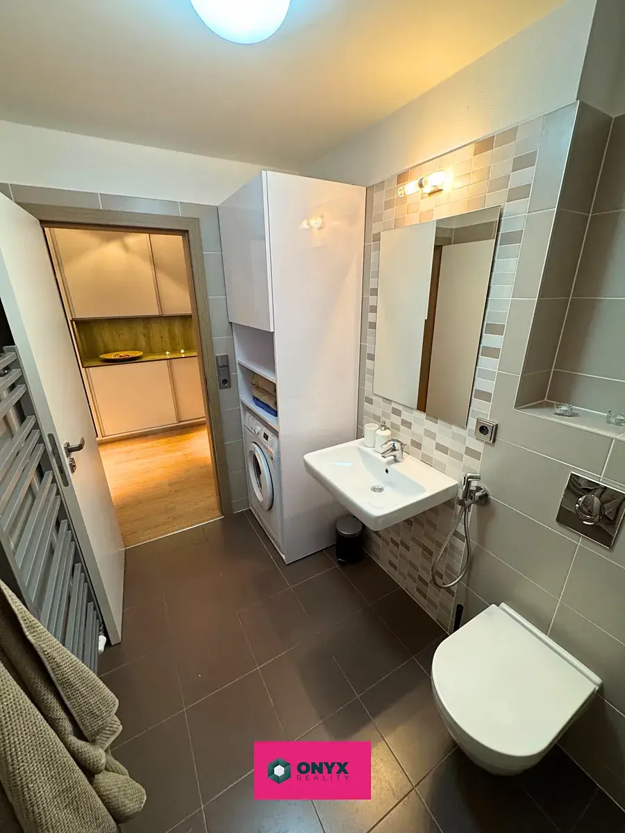 Byt je plnohodnotně vybavený vč. na míru vyrobené kuchyňské linky s vestavěnými spotřebiči, dále s velkou vestavěnou skříní v chodbě a dalším nábytkem.