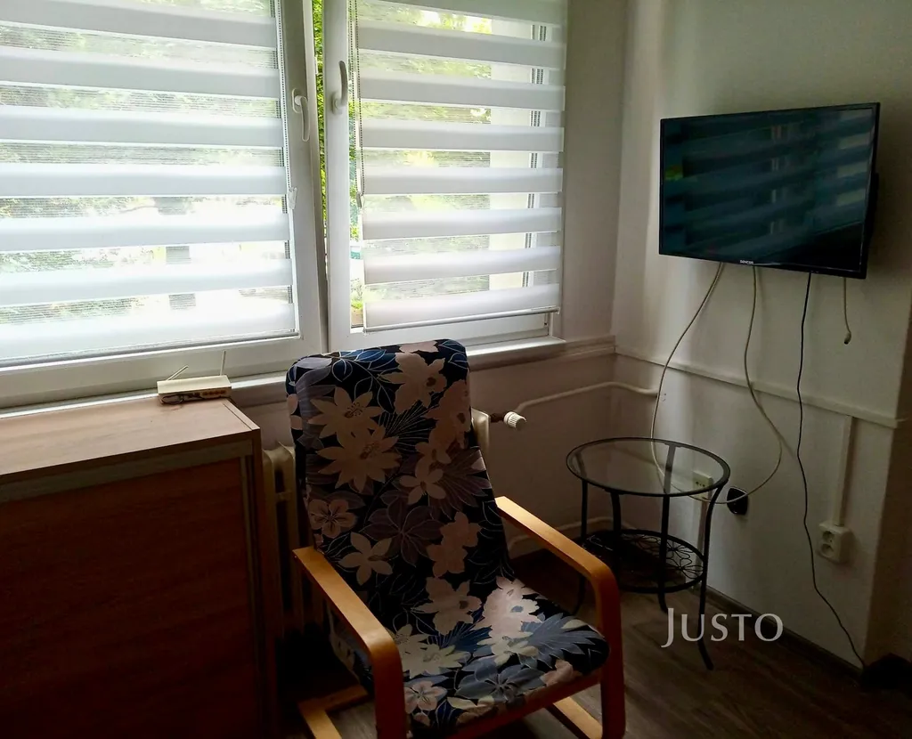 Byt je velmi dobře prosvětlený díky velkým plastovým oknům, která dodávají interiéru vzdušnost a příjemnou atmosféru. Dispozice nabízí obývací pokoj s posezením a televizí, menší, ale plně vybavenou kuchyň a koupelnu se sprchovým koutem. Byt se prodává včetně vybavení – je tedy vhodný jak k okamžitému nastěhování, tak i jako investiční příležitost k pronájmu.
