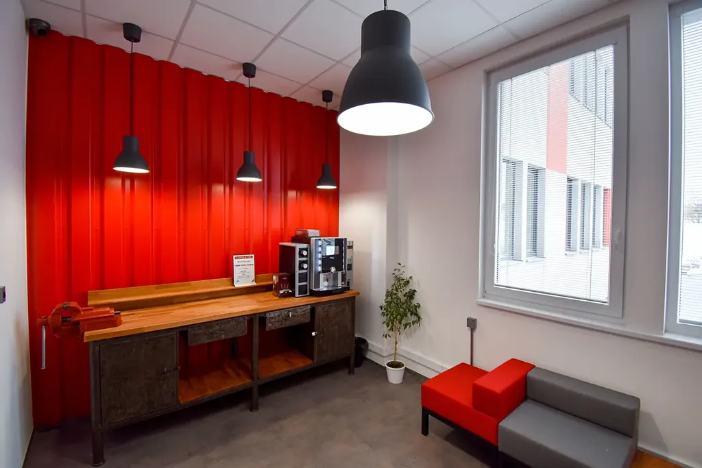 • Popis prostor k pronájmu: Jedná se o menší kancelář bez vybavení. Na podlaze je koberec a součástí kanceláře je i oddělený kuchyňský kout. Na patře je "Meeting Point", sdílené kuchyňky a sociální zařízení.