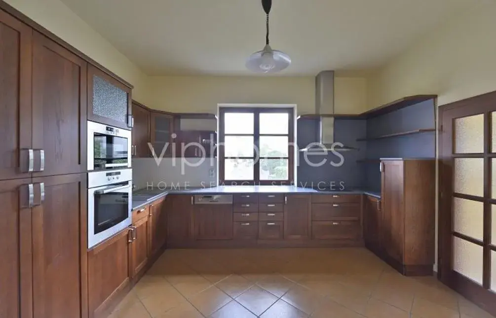 Vila odpovídá nejvyšším nárokům: mramorové schodiště, dřevěné podlahy, rozvody pro satelit, zabezpečovací zařízení ve všech patrech, udržovaná zahrada.