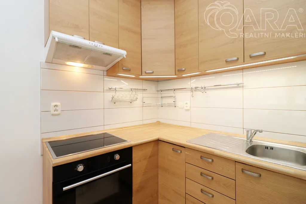 Pronajímá se částečně vybavený, v bytě zůstává kuchyňská linka s indukční varnou deskou, trouba, digestoř, stoleček, 2 židličky, lednice a pračka v koupelně. V ložnici naleznete prostornou šatní skříň se zrcadlem. V garážích možnost bezplatného parkování motocyklu.