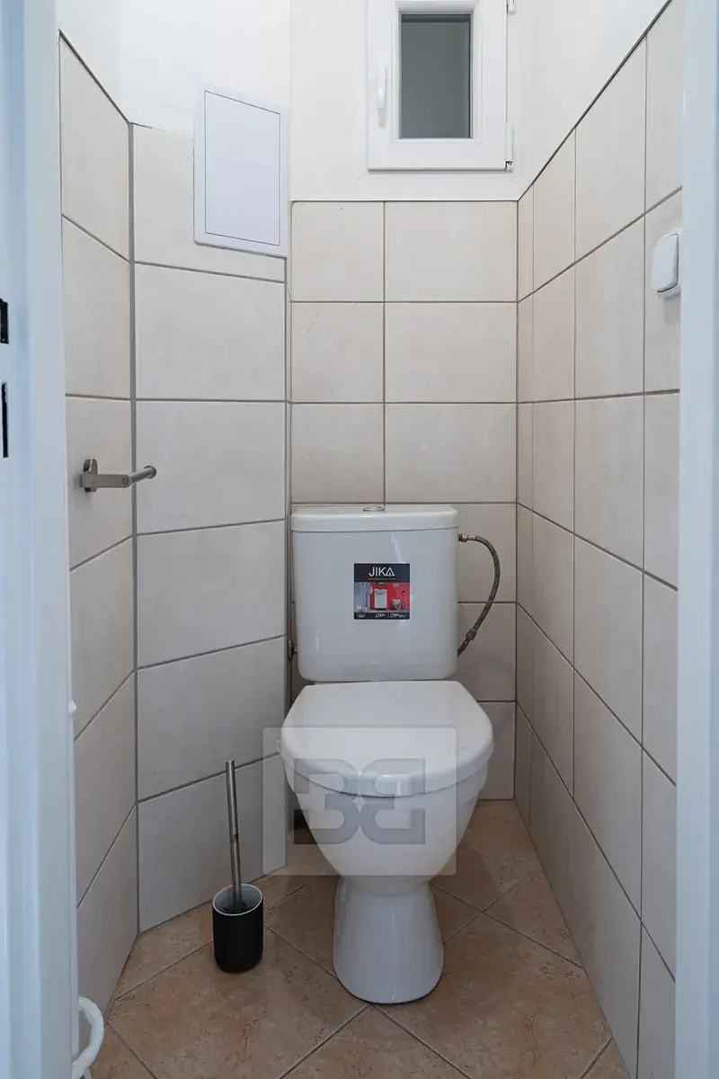 Koupelna je vybavena sprchovým koutem a přípojkou na pračku (pračka není součástí vybavení). Toaleta je řešena samostatně. Na všech oknech jsou instalovány žaluzie. K bytu náleží také sklep.