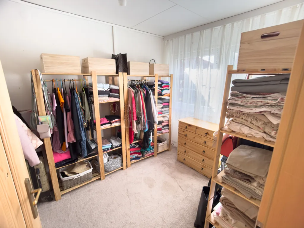 V prvním nadzemním podlaží se nachází vstupní hala, dva pokoje (z nichž jeden je aktuálně využíván jako šatna), garáž a kotelna.