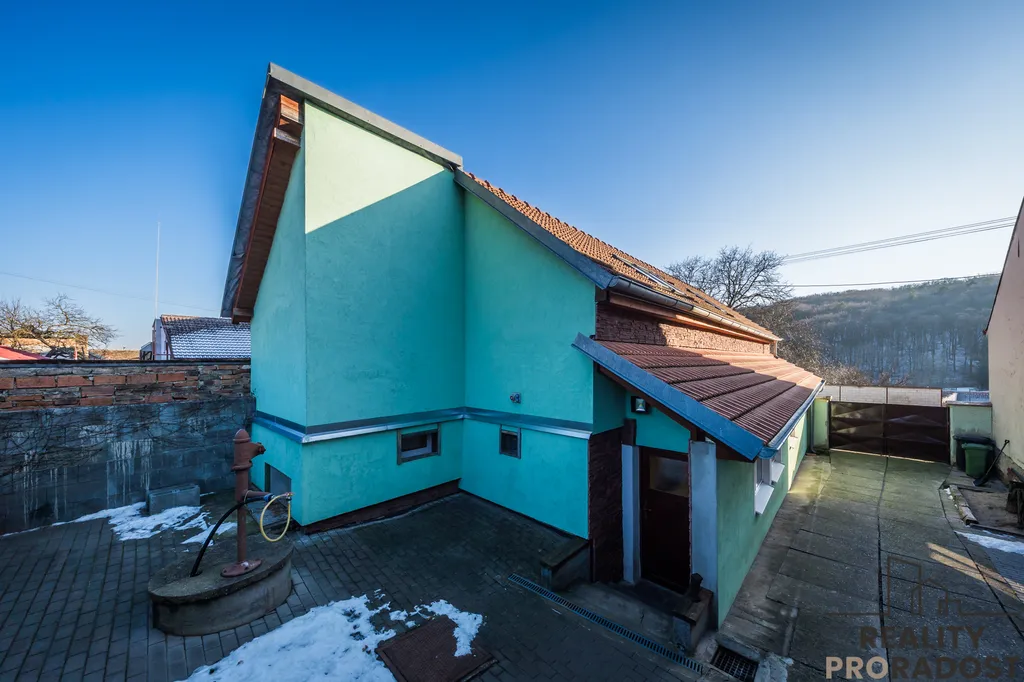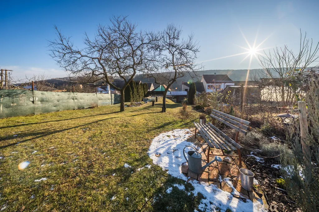 Na uzavřeném dvoře, je k dispozici stání pro 2 auta, studna s užitkovou vodou a dílna. Na zahradě se nachází posezení a kvelbený sklep, kde je možné vychutnávat klid a pohodu, neboť zahrada nabízí prostor pro relaxaci a zahradničení. Přístup na zahradu je možné i ze zední strany pozemku.