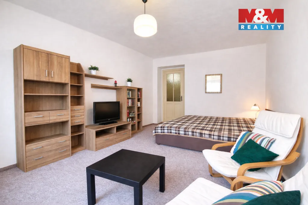 Dispozice bytu nabízí prostorný obývací pokoj s kuchyňským koutem, samostatnou ložnici a koupelnu. Praktickým benefitem je samostatná spíž a dostatek úložných prostor, které umožňují efektivní využití bytu bez nutnosti dalších investic do nábytku.