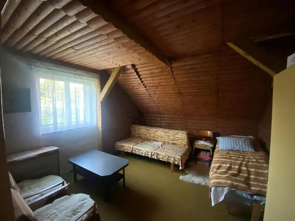 Patro (cca 78 m): tři letní ložnice realizované dřevěným obkladem, jedna z nich omítnutá, nevyužitý půdní prostor