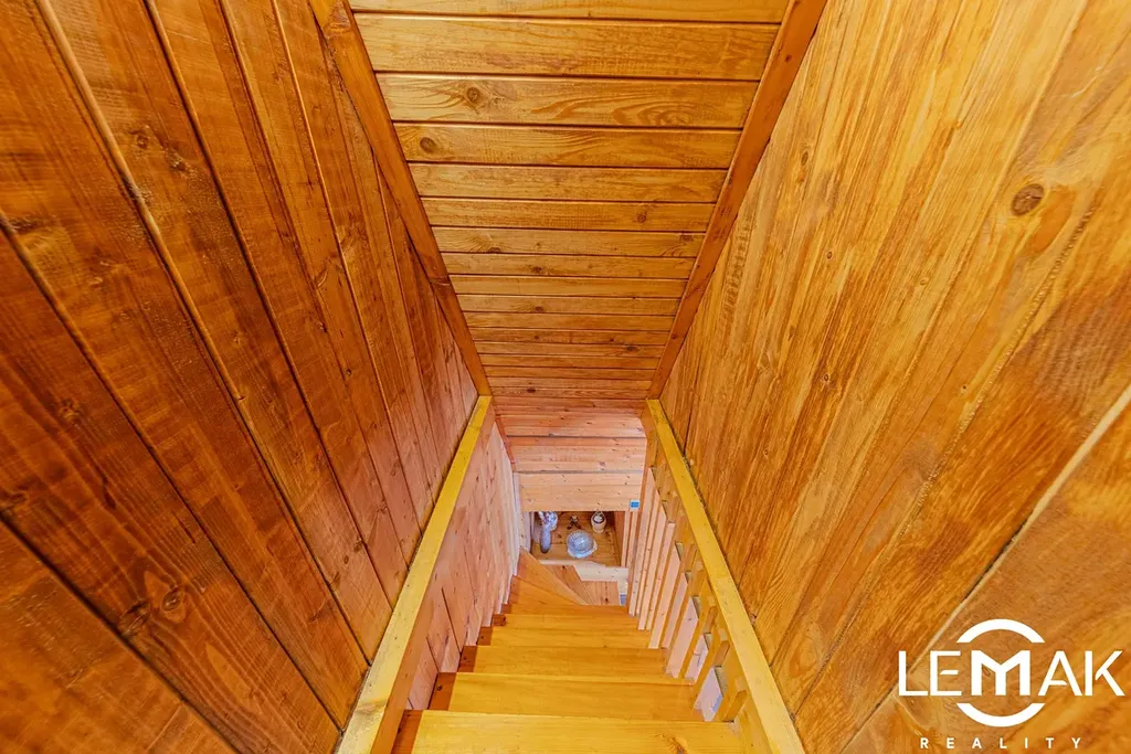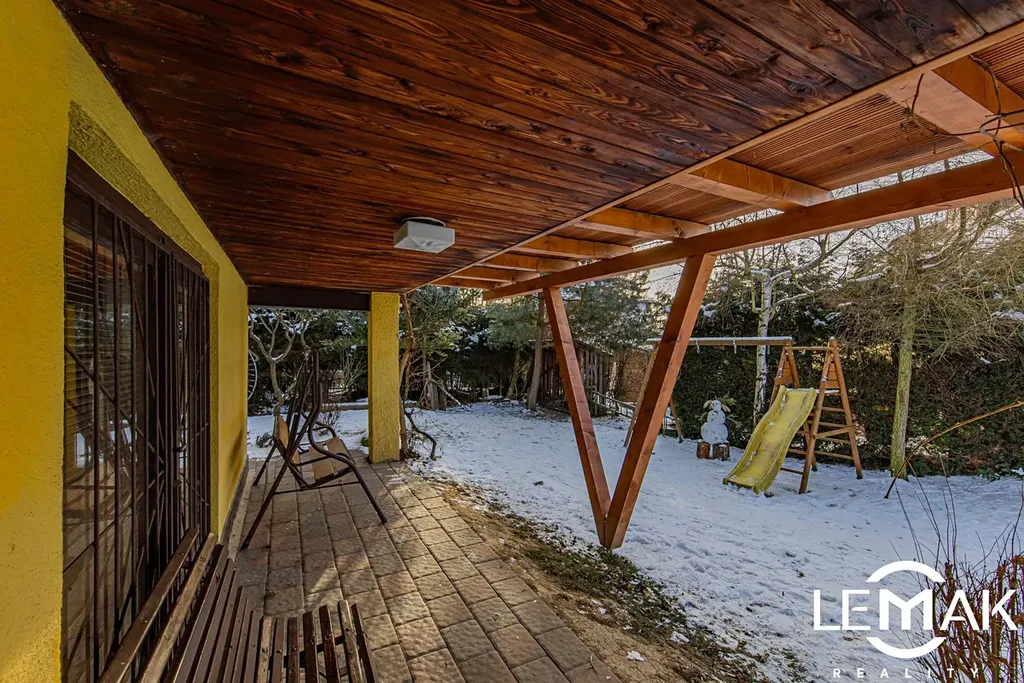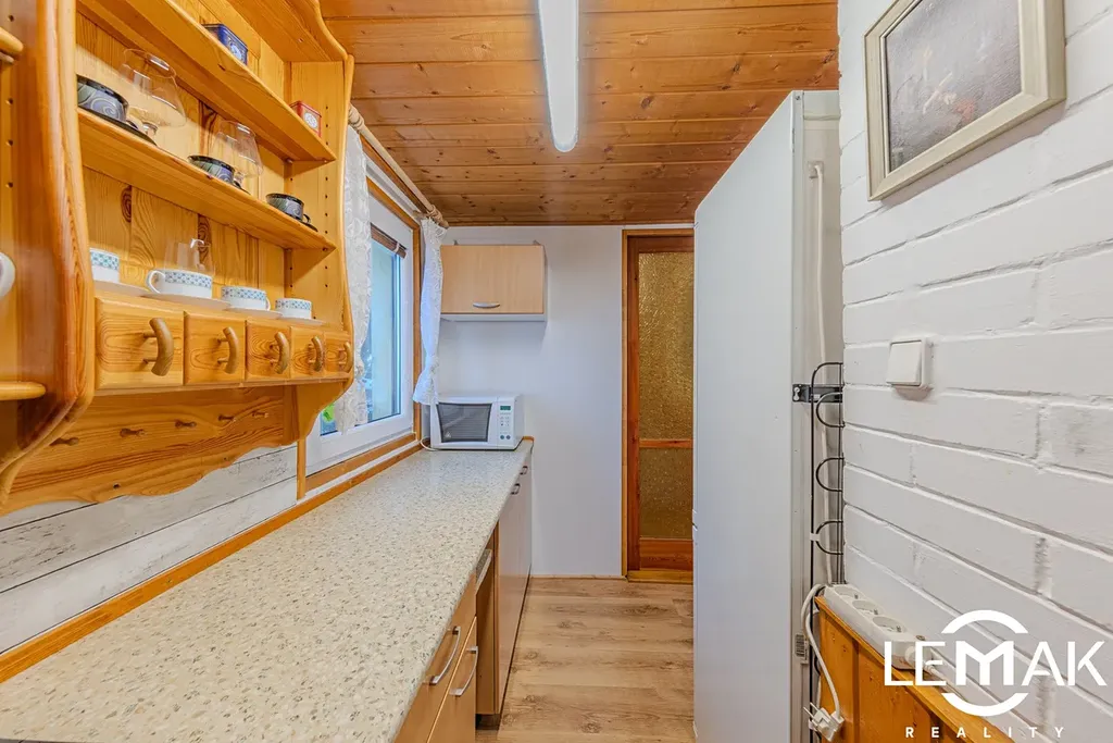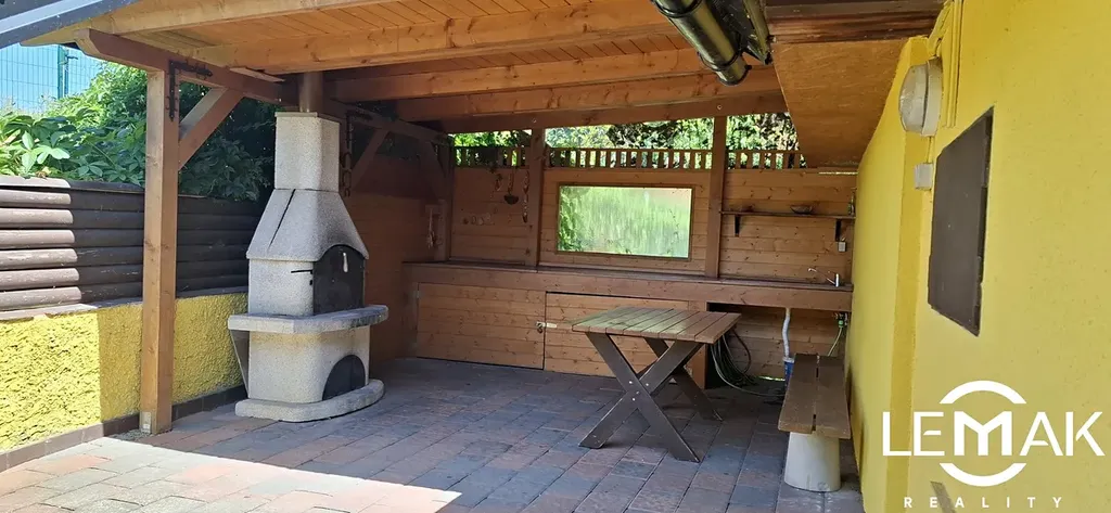 Podkroví nabízí dva samostatné pokoje, z nichž jeden má balkon s pěkným výhledem do okolní krajiny. Venkovní zázemí doplňuje grilovací přístřešek a částečně zastřešená venkovní kuchyně se zavedenou vodou, ideální pro letní posezení s rodinou nebo hosty.