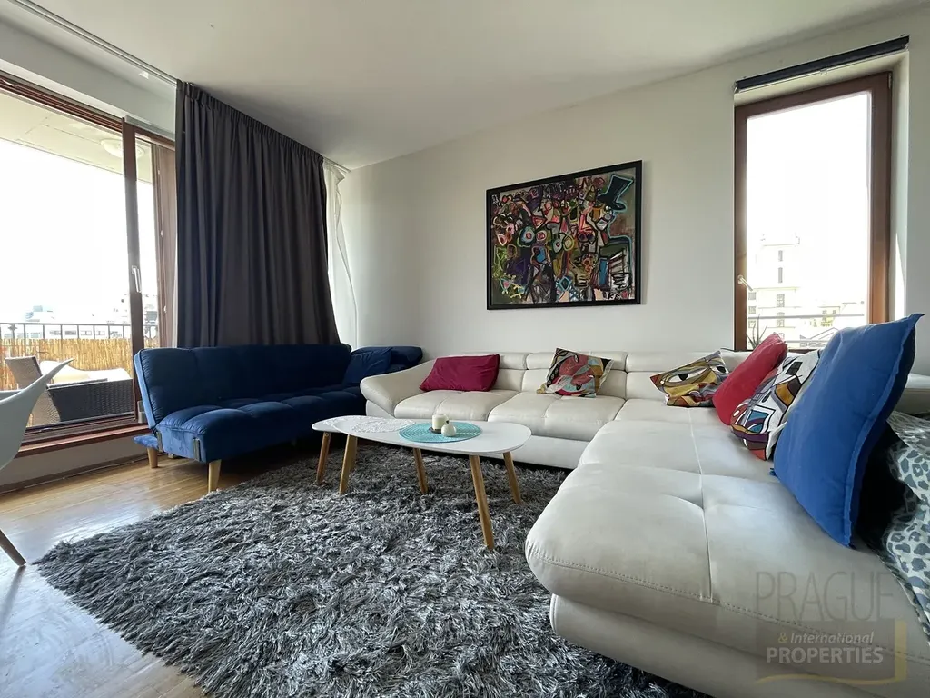 Pronájem vkusně zařízeného bytu 2+kk o velikosti 69 m² se dvěma terasami v klidném rezidenčním projektu s výbornou dostupností do centra Prahy; byt se nachází v 5. patře cihlového domu s výtahem a nabízí prostornou vstupní halu s vestavěnou skříní na míru, z ní je přístup do ložnice, koupelny a obývacího prostoru s kuchyňským koutem, samostatné WC, přičemž ložnice i obývací pokoj mají vlastní terasy; moderní kuchyňská linka je plně vybavena vestavěnými spotřebiči (indukční varná deska, trouba, myčka), v obytných místnostech jsou kvalitní dřevěné parkety a v hale a koupelně dlažba; lokalita nabízí výbornou dopravní dostupnost do centra (tramvají cca 10 minut), kompletní občanskou vybavenost, parky a klidové zóny v těsné blízkosti a před domem je autobusová zastávka; měsíční poplatky činí 5 300 Kč (vytápění, voda, poplatky do společných prostor) + 800 Kč elektřina; byt k nastěhování od 1.3.2026