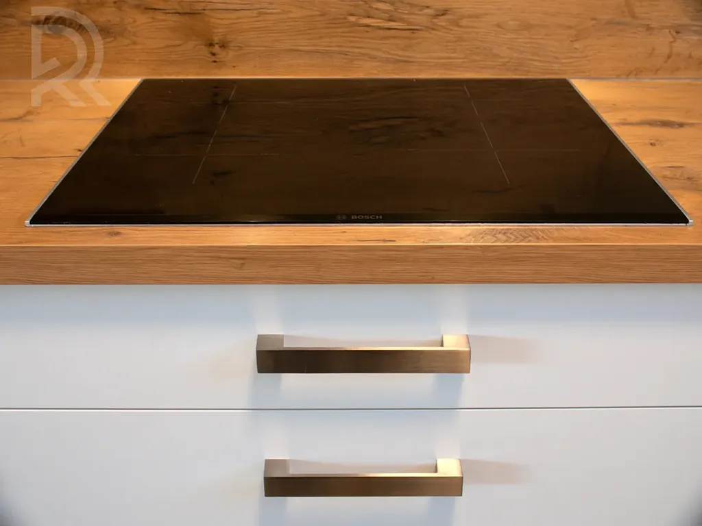 - kuchyňská linka se zabudovanými spotřebiči (indukční varná deska, trouba, mikrovlnná trouba, digestoř, lednice, myčka, dřez),