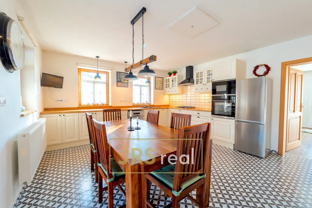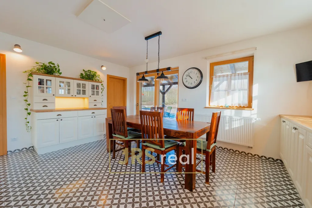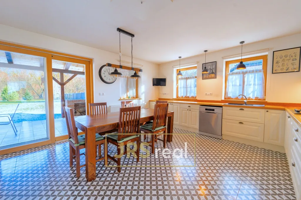 Velkou přidanou hodnotou je pravidelný pozemek o celkové výměře 2 699 m², který zajišťuje vysokou míru soukromí a široké možnosti využití. U domu se nachází terasa o ploše cca 60 m² a na zahradě dvojgaráž o velikosti 105 m² se samostatnou místností s posezením, vytápěnou krbovými kamny a s francouzským oknem. Na pozemku je dále samostatná dílna s garážovými vraty a původní medovna, která nabízí možnost přestavby například na domácí wellness, ateliér, fitness nebo pracovnu. Všechny vedlejší stavby jsou řádně zapsány v katastru nemovitostí.