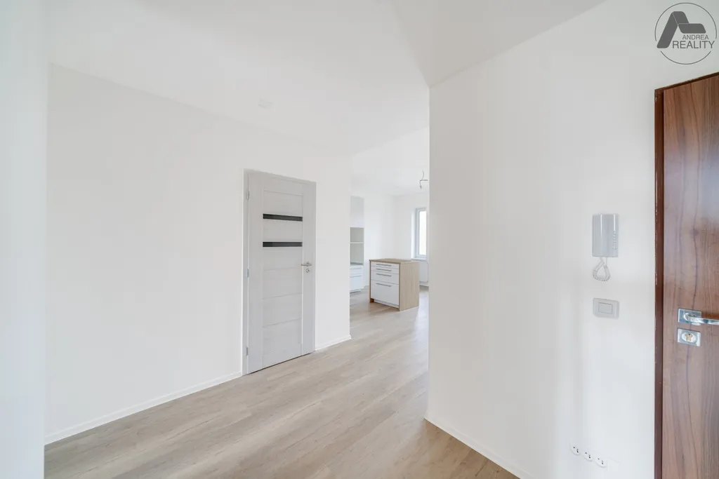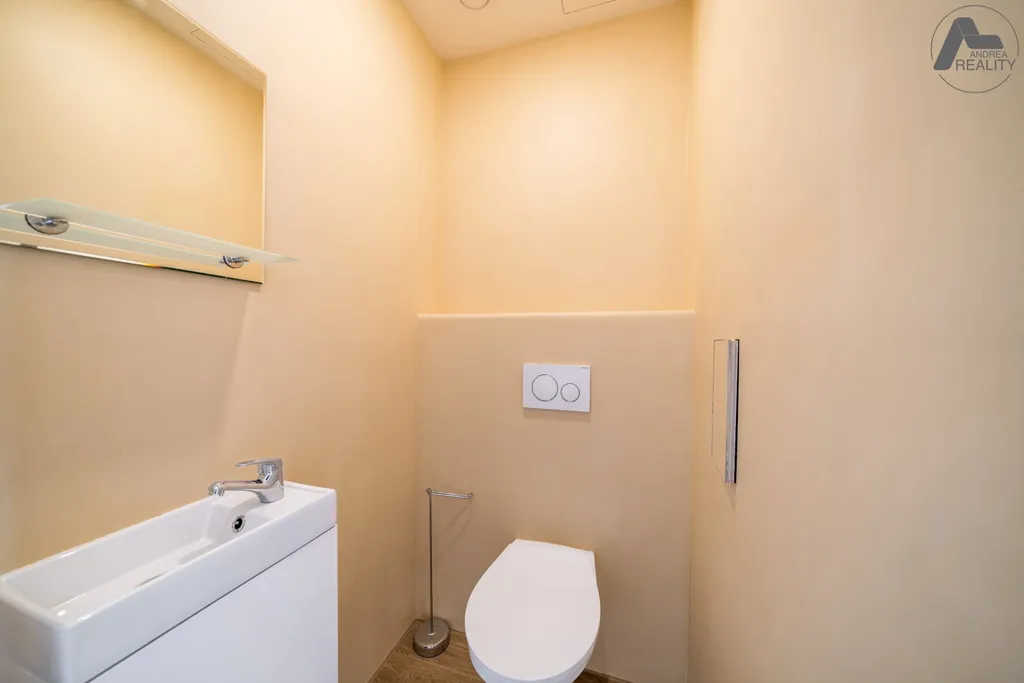 V předsíni, jakožto srdci bytu, dominuje prostorná šatní skříň, která poskytuje dostatek úložného prostoru. Koupelna je moderně zařízena rohovou vanou, sprchovým koutem, umyvadlem se skříňkou s úložnými prostory a místem pro pračku a sušičku. Dále zde najdete další toaletu a plynový kondenzační kotel na ohřev vody a vytápění.