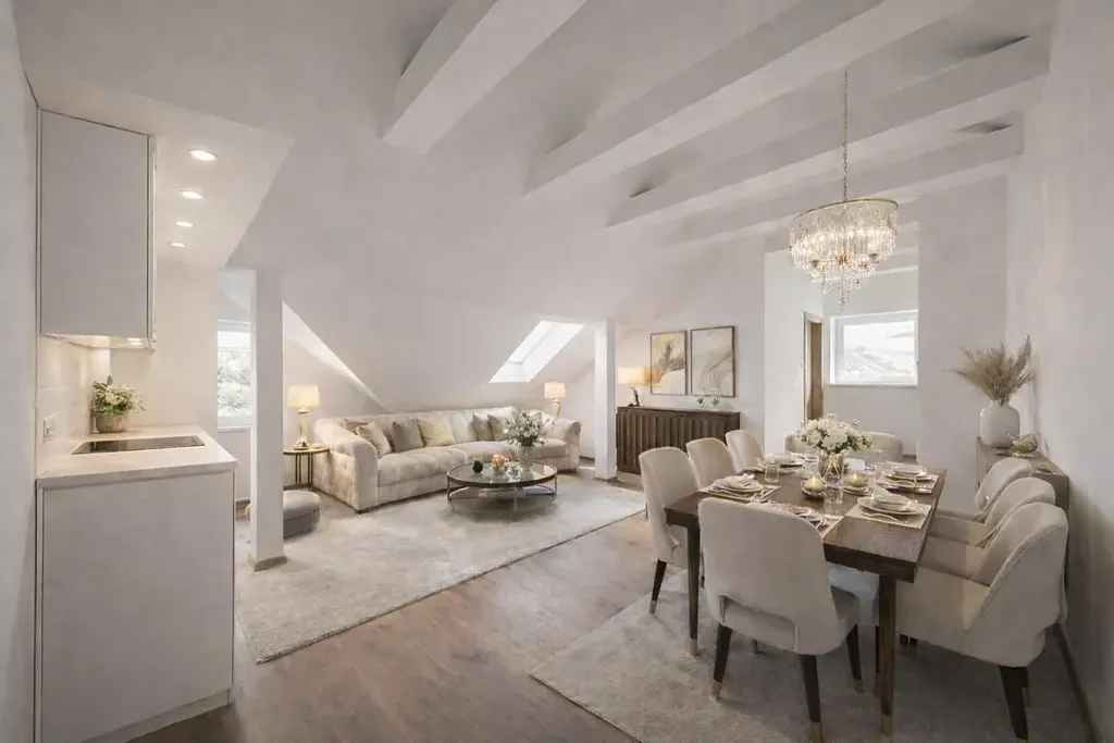 Byt zaujme promyšlenou dispozicí: tři komfortní ložnice doplňuje prostorný obývací pokoj plynule propojený s moderní kuchyní. Elegantní koupelna a samostatné WC zajišťují maximální komfort každodenního života.