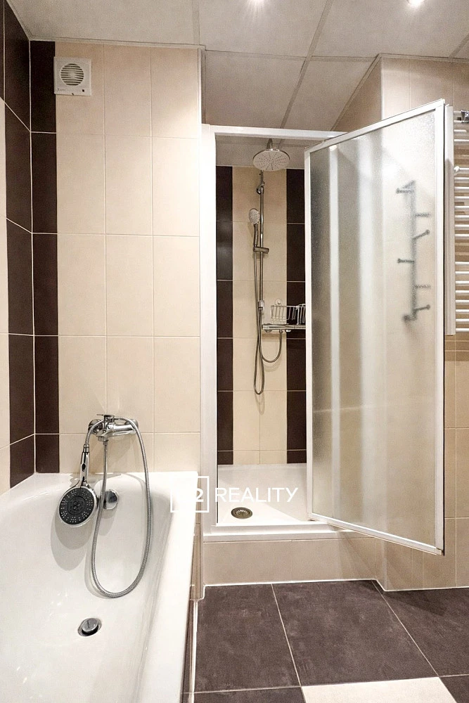 Velkou výhodou je koupelna vybavená vanou i sprchovým koutem – ideální kombinace pro rodinný provoz.