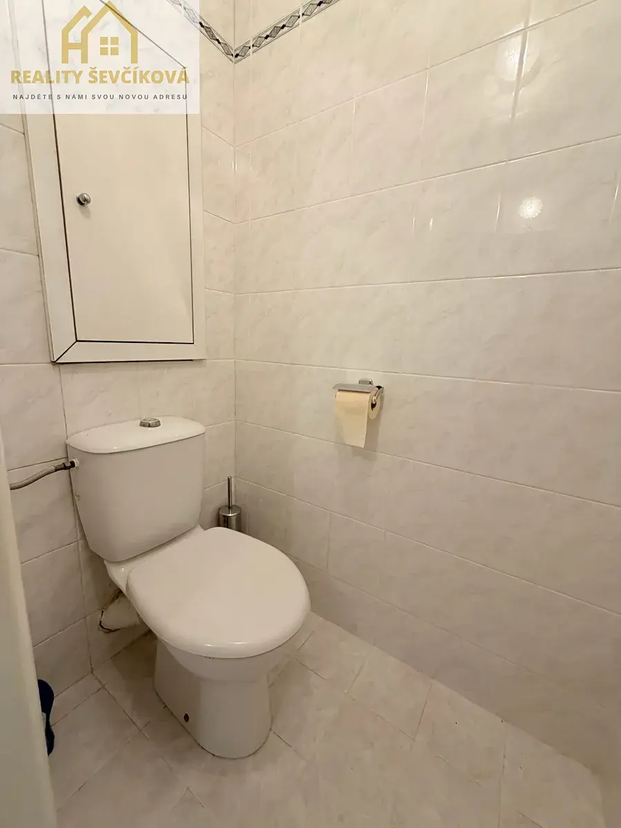 Dispozice: prostorná vstupní chodba, koupelna se sprchovým koutem a oddělenou toaletou, kuchyň s místem pro jídelní kout a velký centrální pokoj. Byt je vybaven kuchyňskou linkou, jinak se pronajímá bez zařízení.
