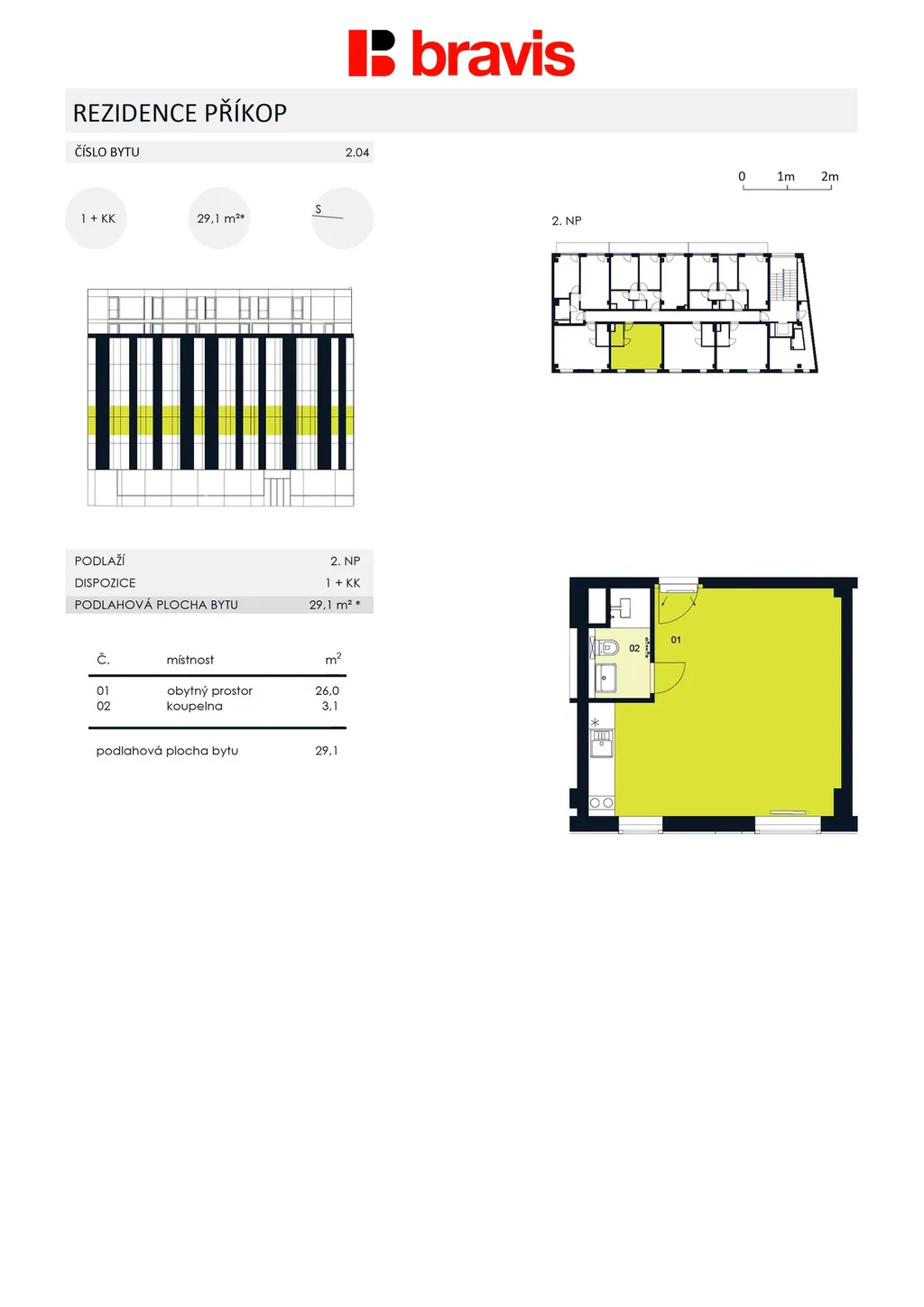 Inzerovaný byt 1kk o celkové ploše 30 m2 se nachází ve 2.NP, přesné umístění uvidíte na fotografiích.