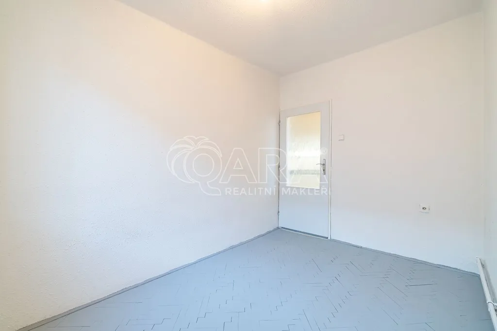 Celkovou dispozici bytu (68 m2) tvoří vstupní chodba (7,7 m2), koupelna s vanou (3,5 m2), samostatná toaleta (1 m2), komora (1,5 m2), obývací pokoj (17,5 m2) s lodžií (3,8 m2), ložnice (17,5 m2), dětský pokoj (8,2 m2) a kuchyň (7,3 m2).