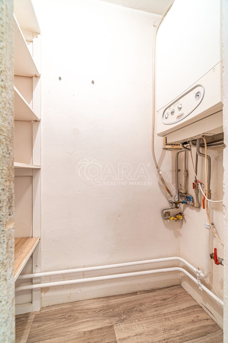 Vytápění bytu a ohřev vody zajišťuje vlastní plynový kotel s rozvodem do ústředního topení umístěný v komoře v bytě.