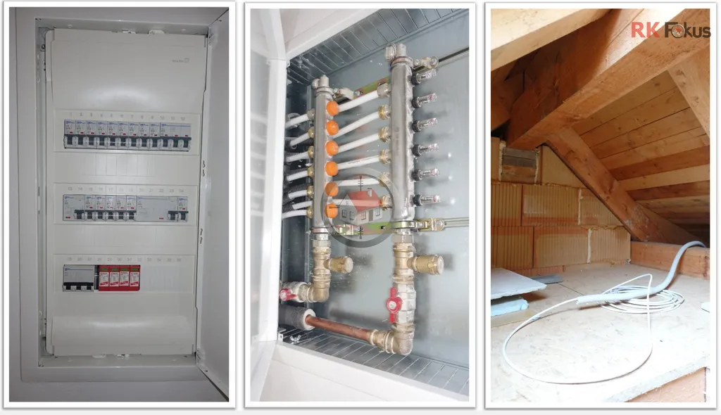 O tepelnou pohodu po celý rok se stará plynový kotel s rozvodem podlahového vytápění do celého domu, což zajišťuje rovnoměrné a příjemné teplo. Atmosféru domova pak v obývacím pokoji dotváří krb bez výměníku, ideální pro chladnější večery i příjemné posezení s rodinou.