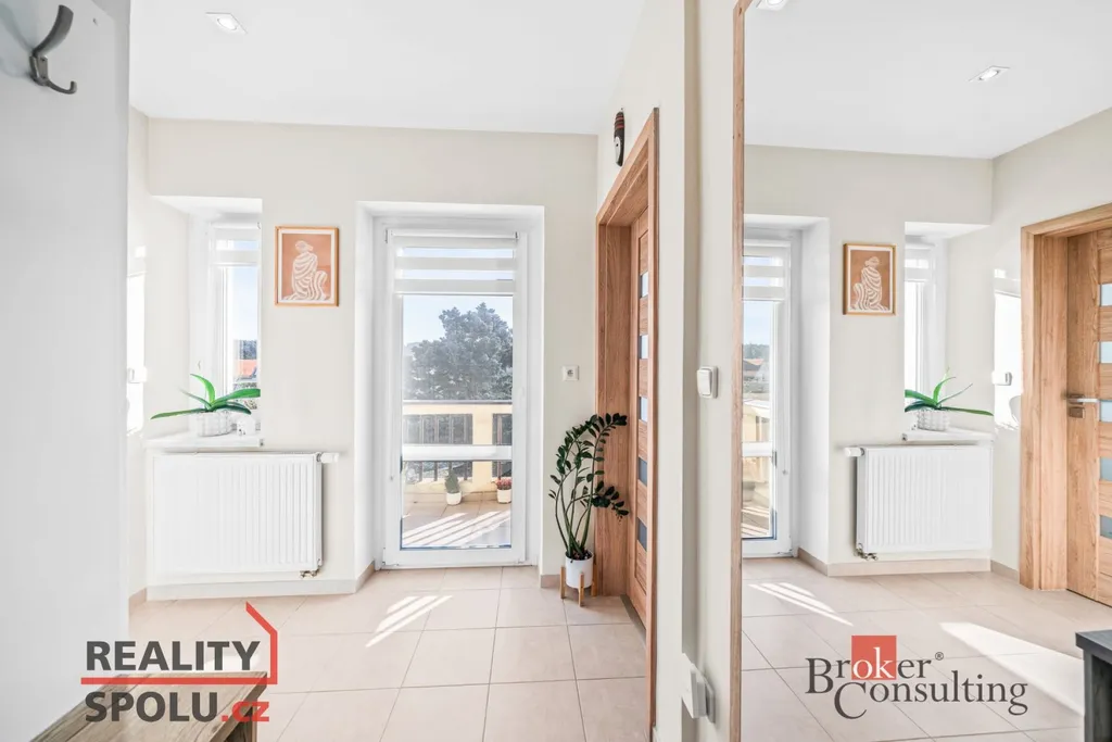 Uzavřený areál s elektrickým vjezdem, 2 vyhrazená parkovací místa přímo u domu, společná zahrada. Malý dům se 4 byty – tento je největší. Samozřejmostí je i sklepní kóje.