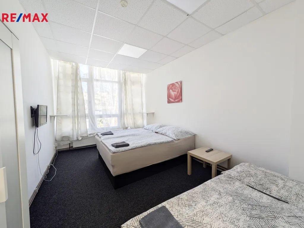 Celkem tři prostory, každý o velikosti cca 20m² jsou vhodné pro provozovnu, kanceláře či služby. K dispozici je vlastní sociální zázemí – sprcha a WC. V minulosti byly prostory využívány k ubytovacím účelům, po dohodě s majitelem a po menších úpravách je možné je přizpůsobit také jako prodejnu nebo skladovací prostor. Velkou výhodou je výborná dopravní dostupnost, rozsáhlé parkoviště v blízkosti objektu.
