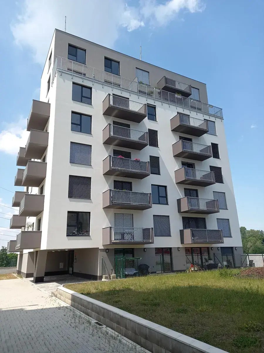 Dovolujeme si Vám nabídnout dlouhodobý pronájem bytu v novostavbě o dispozici 1+kk o podlahové ploše 36,2 m2 + sklep o výměře 2,2 m2 + balkón o výměře 5,7 m2 nedaleko stanice metra Rajská zahrada, trasa B. Byt se skládá z předsíně, koupelny + WC a obývacího pokoje s kuch. koutem. Byt je umístěný ve 3. nadzemním podlaží domu s výtahem. Jde o novostavbu domu.