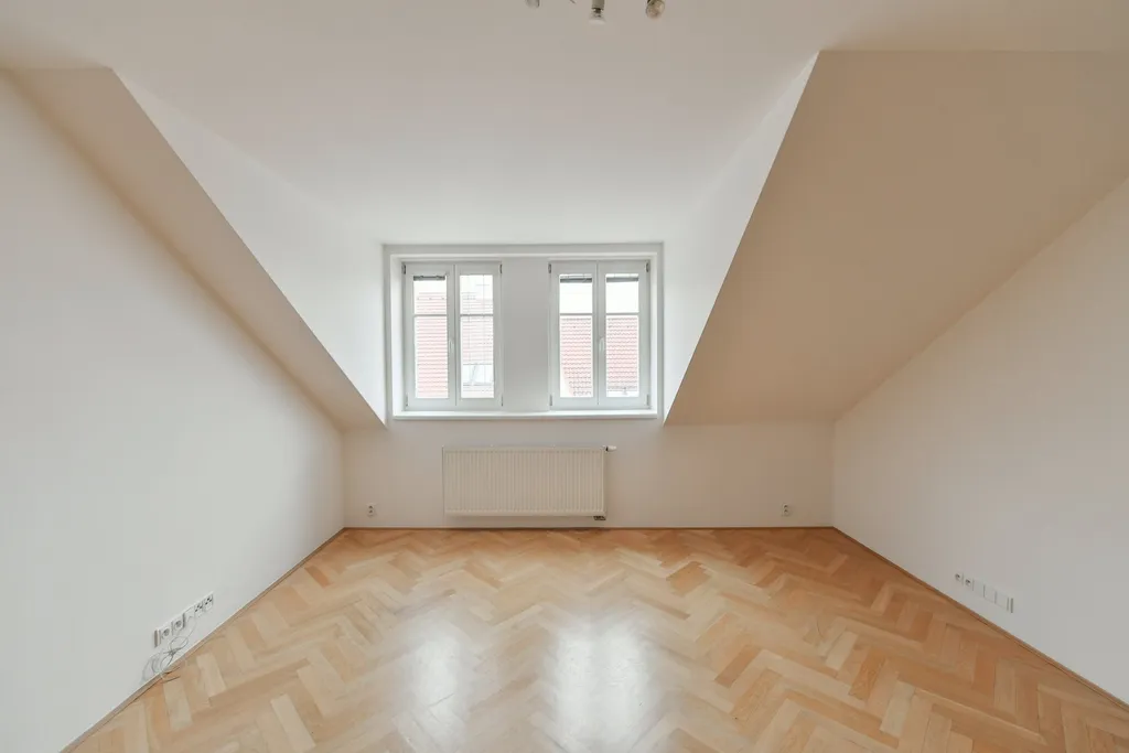 Nabízíme k pronájmu krásný, velmi prostorný, klimatizovaný, podkrovní byt 2+kk s terasou směřovanou do vnitrobloku o celkové výměře cca 71.68 m2, Byt je umístěný v 6.NP kompletně zrekonstruovaného a výborně udržovaného činžovního domu s výtahem v příjemné lokalitě na rozhraní Vinohrad a Vršovic. Dispozičně je byt vhodný pro mladý pár nebo jednu osobu BEZ psů. K dispozici je plně vybavená kuchyňská linka se sporákem, ledničkou a myčkou, klimatizace, koupelna, samostatné WC, praktická šatna v ložnici a terasa. Na podlahách jsou parkety a dlažba. Byt se nabízí bez nábytku. Parkování na ulici na modré zóně. V okolí je veškerá občanská vybavenost, za rohem Tesco Express, cca 5 min na metro A náměstí Míru. Poplatky 1 osoba 1.284,- Kč, 2 osoby 2.134,- Kč + převod energií ( plyn, elektřina ) na nájemníka. Prohlídky budou probíhat od 2.2.2026, reakce s vaším kontaktem, prosím, posílejte na email. Volné po domluvě ihned.
