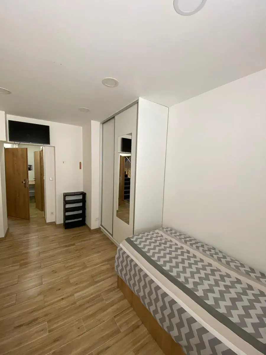 Dispozice a vybavení: Kuchyňský kout se spotřebiči (lednice, varná deska, digestoř). Velkou výhodou je klimatizace. V pokoji je vestavěná skříň, stůl, 2 židle, TV a dvě postele s kvalitní matrací s polštářem, přikrývkou, plachtou a povlečením. Koupelna se sprchovým koutem a WC.