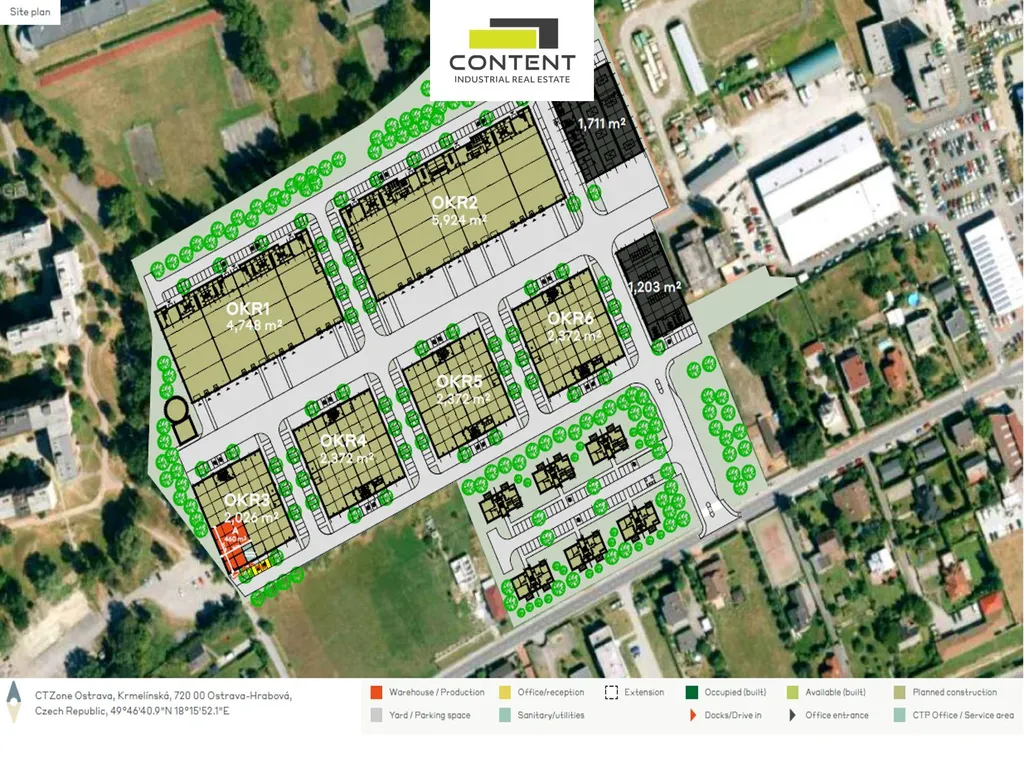 - industriální budova 2026 m² ve výstavbě, k dispozici do 6 měsíců,