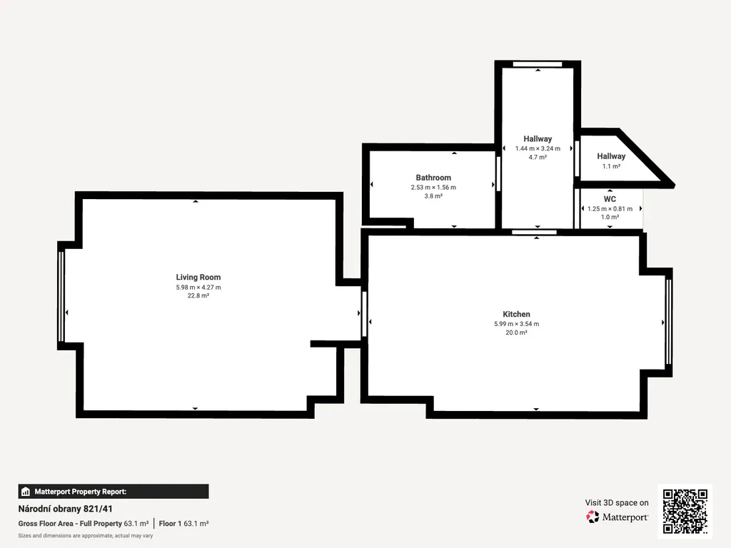 Dispozice bytu: prostorná předsíň, koupelna, samostatné WC, komora, ložnice a obývací pokoj s kuchyňským koutem orientovaná do vnitrobloku. Dům má udržované společné prostory a menší vnitřní dvůr, který je k dispozici pro obyvatele domu.