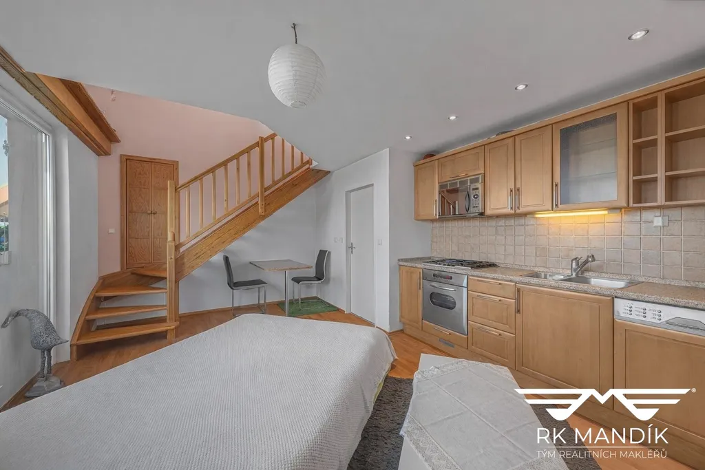 Nabízíme k dlouhodobému pronájmu mezonetový byt 2+kk s terasou v ulici Navigátorů, Praha 6 – Liboc. K nastěhování od 1. 3. 2026. Byt se nachází v posledním patře domu bez výtahu – ideální pro nájemníky, kterým schody nevadí a naopak je berou jako příjemný denní „kardio bonus“.
