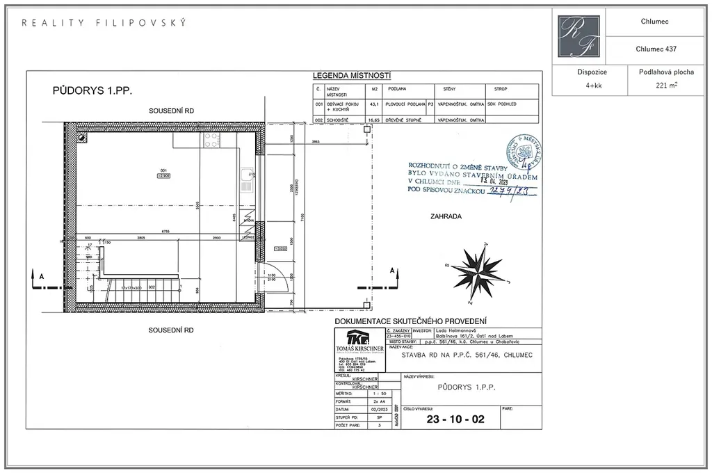 1.PP pak obsahuje samostatnou ložnici, vstup do zastřešené pergoly s posezením a dále na zahradu s malým jezírkem a zabudovanou nádrží na vodu.