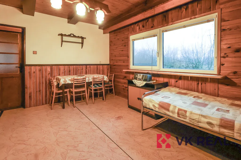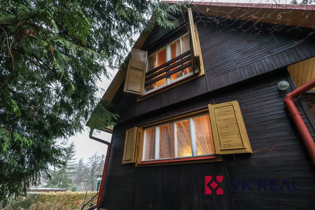 K chatě náleží mírně svažitý pozemek/zahrada cca 320m2. Tento je orientovaný od chaty směrem k jihu. Na pozemku stojí přístřešek a kolna na zahradní nářadí.