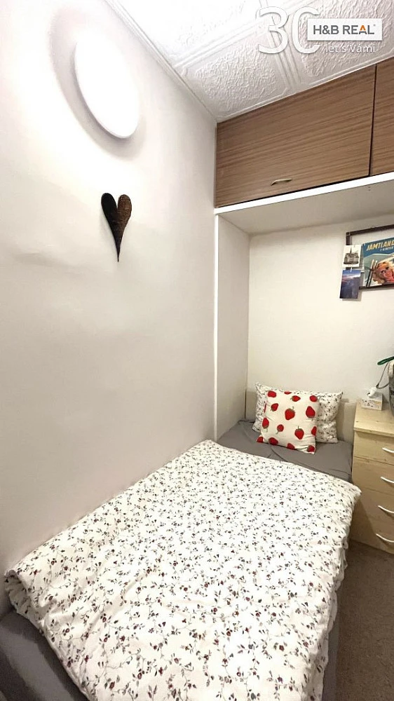 Prodej bytu v osobním vlastnictví v Otrokovicích. Byt se nachází ve 4. NP zrevitalizovaného bytového domu (PENB: C). Má výměru 56 m², k tomu prostorný sklep cca 10 m² a zasklená lodžie 4 m². Byt má orientaci východ/západ a prošel rekonstrukcí přibližně před 25 lety. Původní dispozice bytu byla 2+1, jednoduchou úpravou byla z části předsíně a šatny vytvořena třetí menší místnost, která může být využita např. jako ložnice, pracovna, sklad apod.